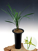 花は翠緑色の三角咲き中輪花。花間も良く葉上に抜ける。 |