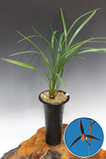 花は小輪の緑三角咲き花間広く葉上に抜ける。あまり見かけない品種。