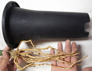 根の長さは植える鉢の深さに収まる長さに調整してください。